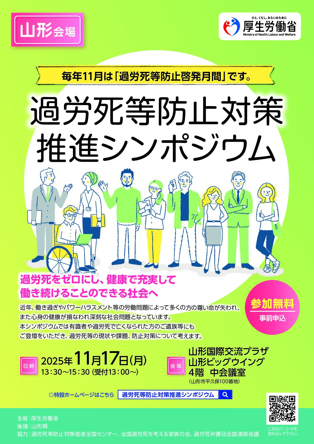 厚労省主催の本シンポジウムでは、有識者や過労死された方のご遺族にもご登壇をいただき、過労死等の現状や課題、防止対策について考えます。