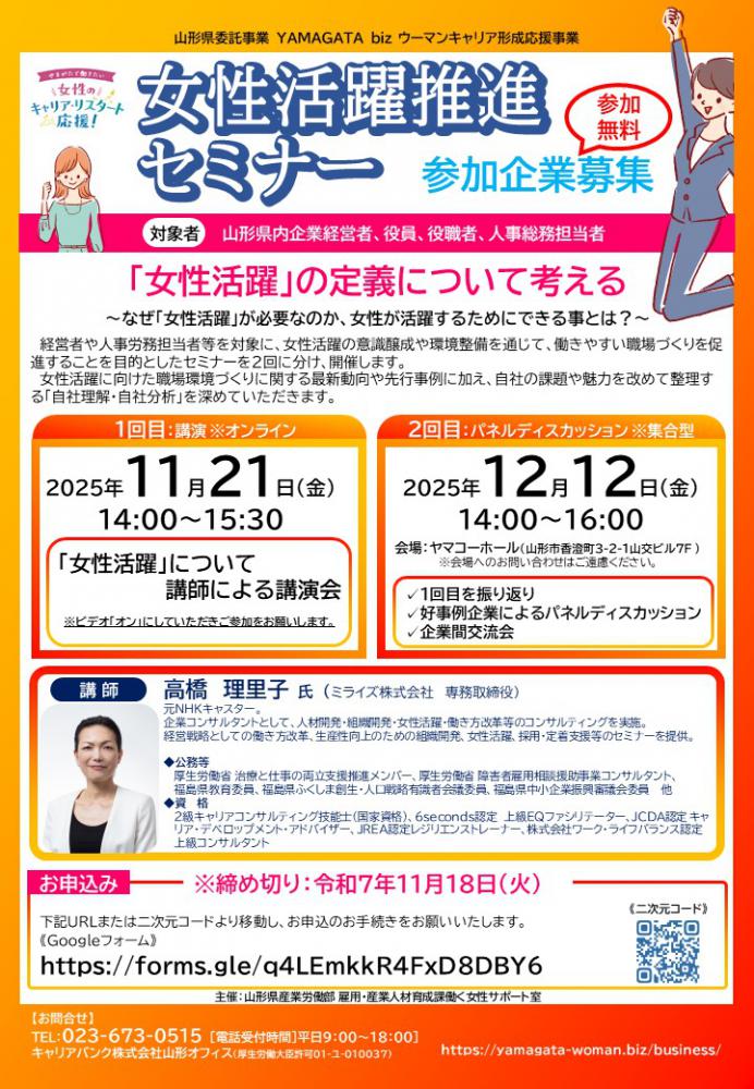 【主催】山形県産業労働部雇用・産業人材育成課 働く女性サポート室