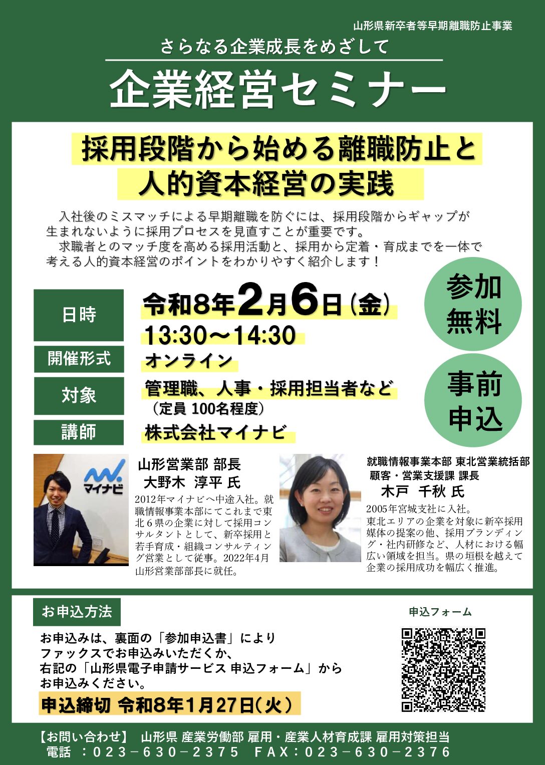 お問い合わせ 山形県産業労働部 雇用・産業人材育成課 雇用対策担当 TEL023-630-2375