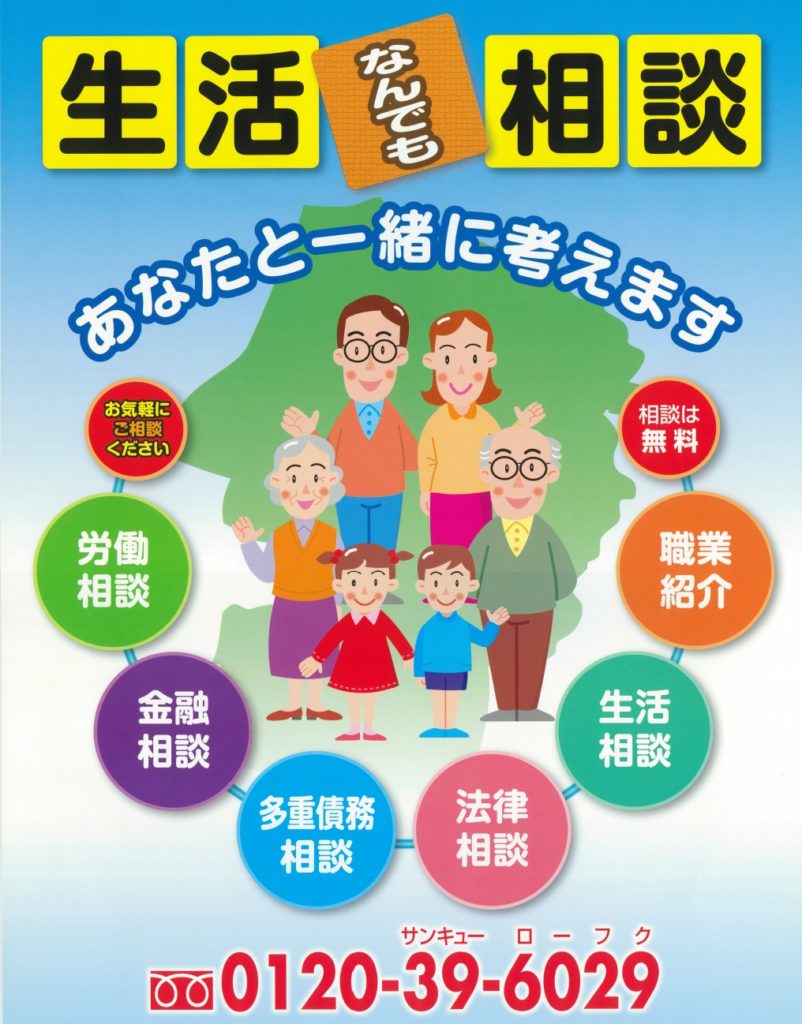 労働相談はもちろんのこと、家計が苦しい、借金返済で困っている、家族関係の悩み、相続・離婚問題など、生活上のことでお悩みの方はお気軽にご相談ください。